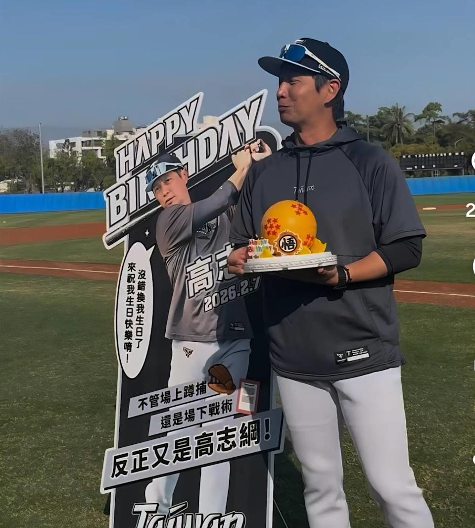 今天是經典賽中華隊首席兼捕手教練高志綱45歲生日,正在國訓中心跟選手們賣力集訓,後勤團隊照慣例準備蛋糕慶生,全隊唱歌祝福,高志綱則許下願望。